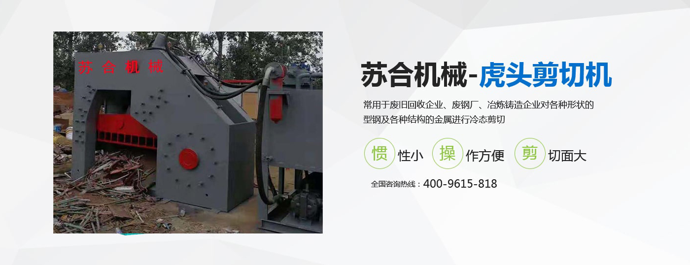 虎頭剪具有體積小、重量輕、慣性小、噪音低、動作平穩(wěn)、操作方便、靈活、剪切斷面大、剪刀口調(diào)整方便等優(yōu)點(diǎn),操作使用安全。常用于廢舊回收企業(yè)、廢鋼廠、冶煉鑄造企業(yè)對各種形狀的型鋼及各種結(jié)構(gòu)的金屬進(jìn)行冷態(tài)剪切。剪切機(jī)的用途就是用來剪切定尺、切頭、切尾、切邊、切試樣及切除軋件的局部缺陷等。 滑縣蘇合機(jī)械制造有限公司性能穩(wěn)定,操作簡單。歡迎來電咨詢 <了解更多>